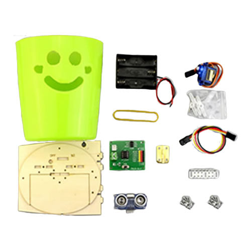 The distance between the barrel and the object in front of it is calculated by the time difference between ultrasonic transmission and reception. When an object is detected in front of it, the lid opens automatically. When the object is detected to leave, the lid closes automatically. Note: when the sensor object is 20CM away from the barrel, the lid will open and stop for 1 second.